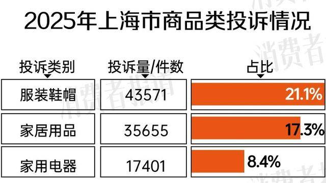 服装鞋帽、家居用品投诉量居前