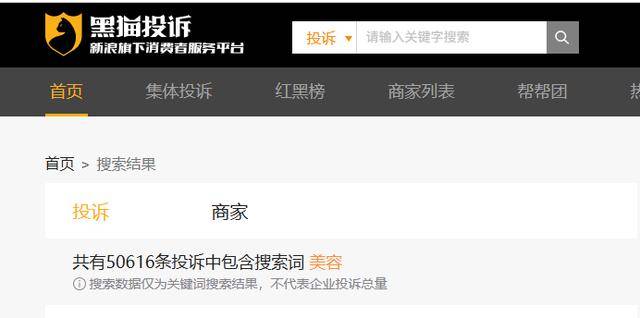 无独有偶,在黑猫投诉平台上,关于“美容”的投诉已达5万多条,这些投诉内容主要涉及商品货不对板、涉嫌虚假宣传等问题。