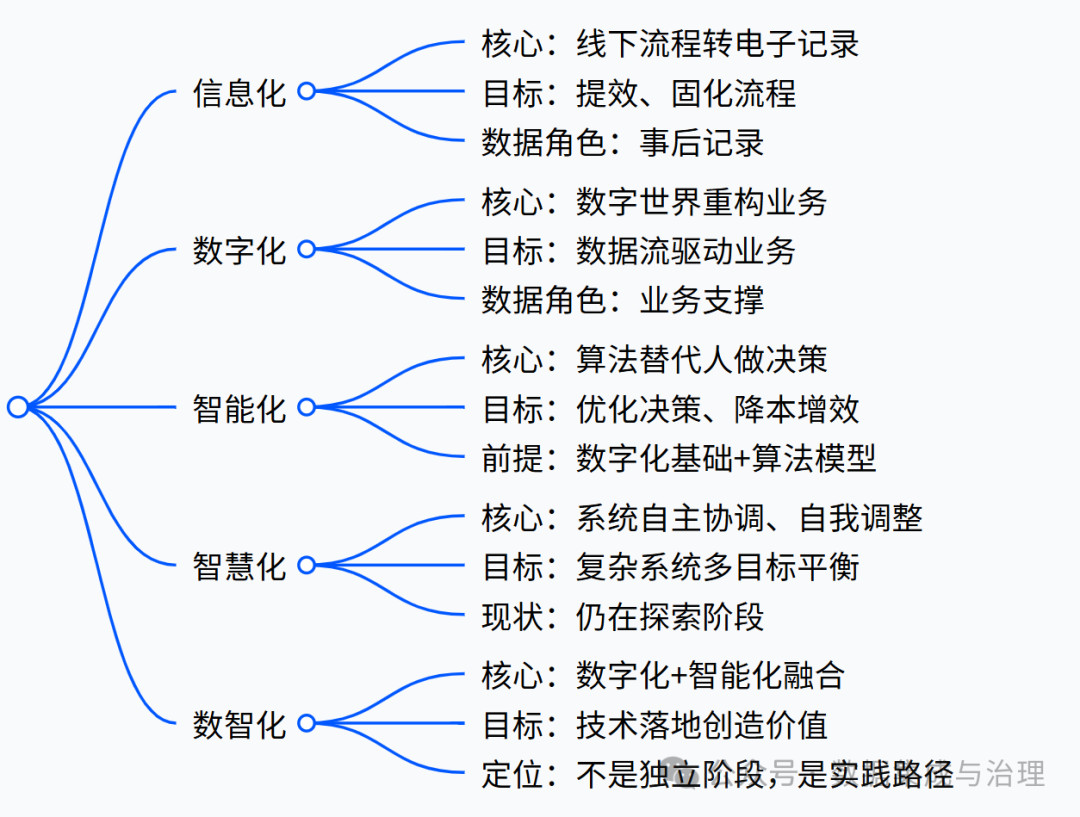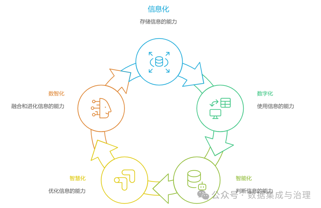 平时我总在和大家聊技术干货,今天呢,想谈一个听起来耳熟,但细想又容易混淆的话题:信息化、数字化、智能化、智慧化、数智化,它们到底有什么不同?