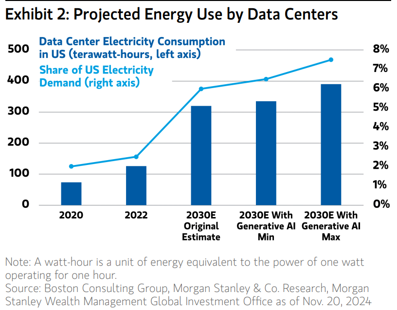 二是发达国家市场的存量更新。以欧洲为例,其早期电网设备老化严重,且配合能源转型急需接入大量可再生能源。同时,人工智能的爆发式增长正催生新的电力“黑洞”。欧洲电网平均服役年限50年,北美40年,更新换代需求迫切。摩根士丹利近期上调了美国2025—2028年数据中心的累计电力缺口预测至47GW,国际能源署预警,到2030年,全球数据中心电力需求将超900TWh 。