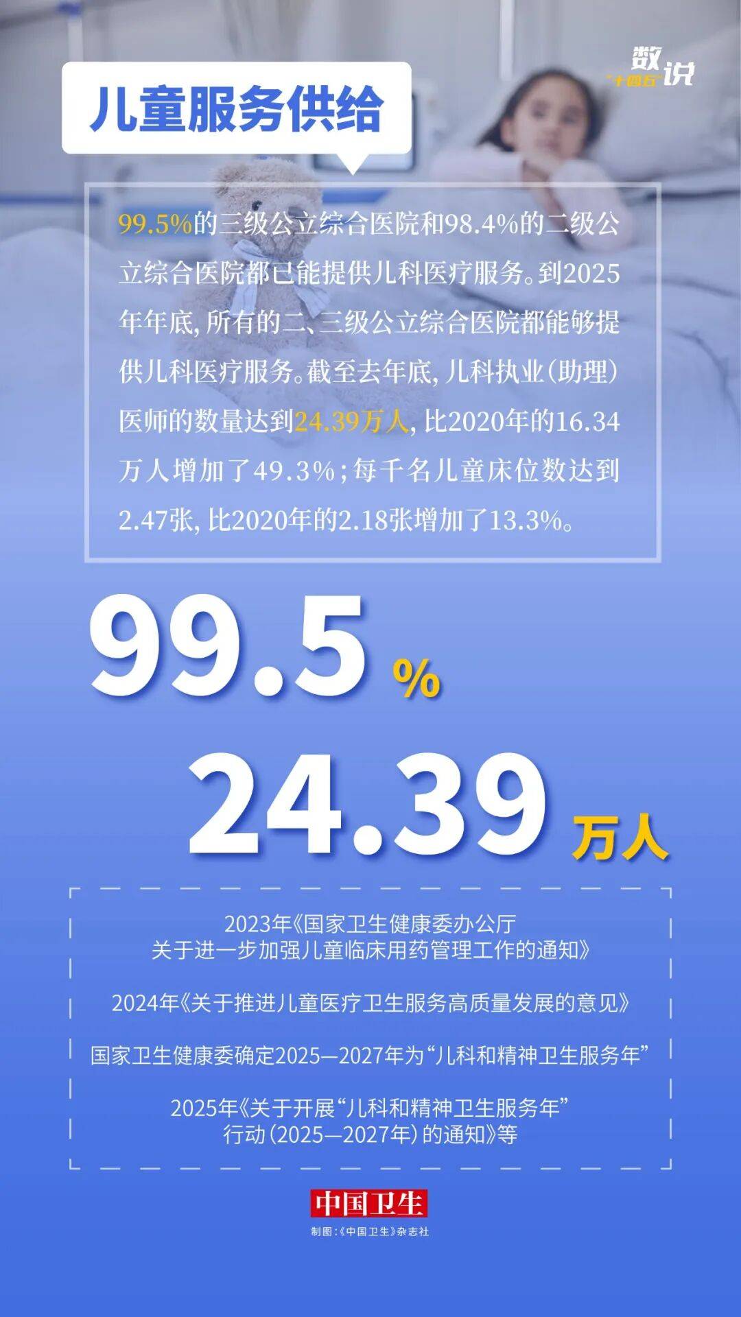 即将召开的全国两会将审议通过《中共中央关于制定国民经济和社会发展第十五个五年规划的建议》。“十四五”已圆满收官,编辑部小编们通过中共中央新闻发布会和国家卫生健康委新闻发布会等权威信息渠道,收集“十四五”期间的卫生健康成绩,以图片数说形式回顾“十四五”发展足迹,为即将开启的“十五五”注入信心、鼓舞士气。