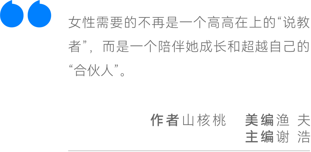 女性需要的不再是一个高高在上的“说教者”,而是一个陪伴她成长和超越自己的“合伙人”。
