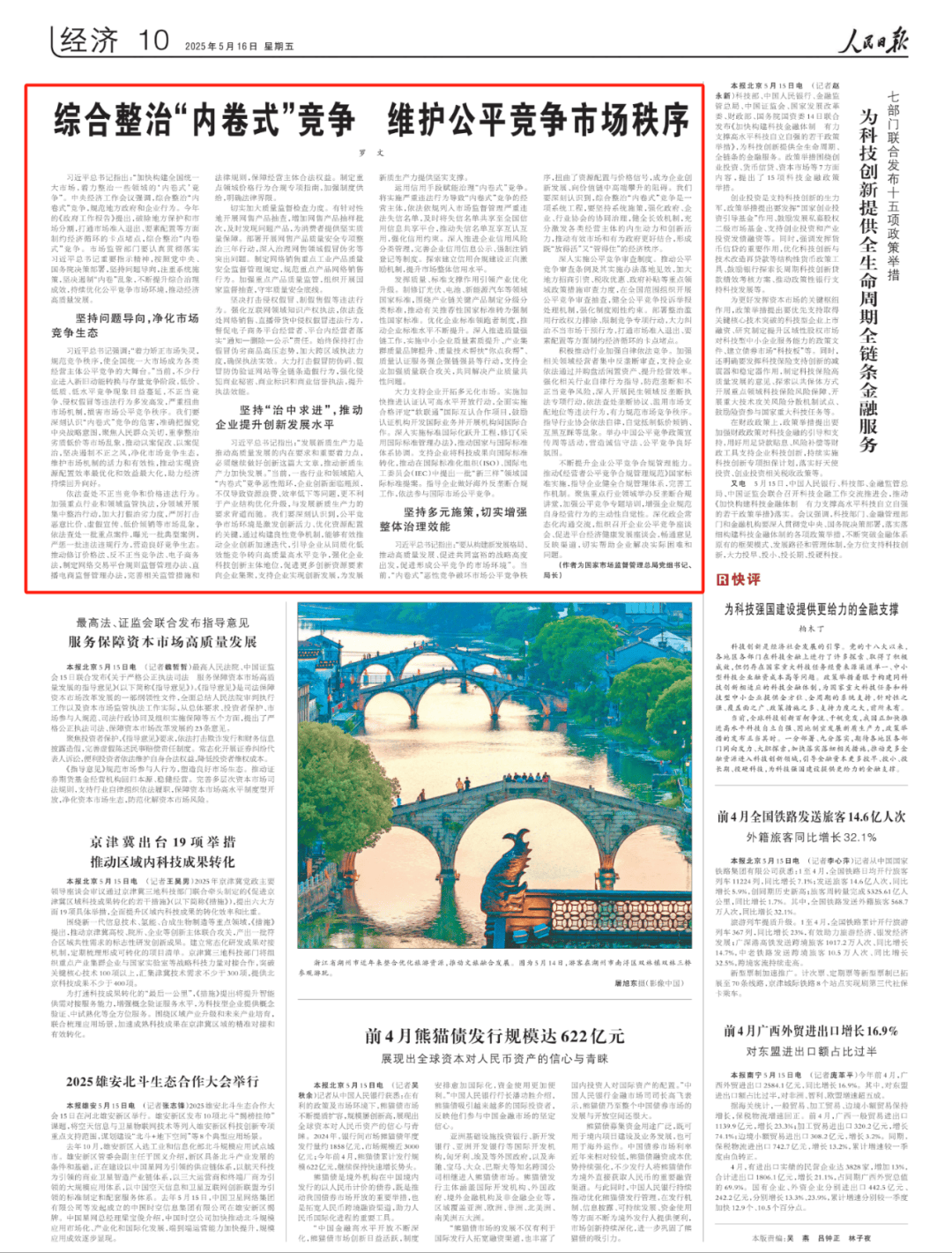 习近平总书记指出:“要从构建新发展格局、推动高质量发展、促进共同富裕的战略高度出发,促进形成公平竞争的市场环境”。当前,“内卷式”恶性竞争破坏市场公平竞争秩序,扭曲了资源配置与价格信号,成为企业创新发展、向价值链中高端攀升的阻碍。我们要深刻认识到,综合整治“内卷式”竞争是一项系统工程,要坚持系统施策,强化政府、企业、行业协会的协同治理,健全长效机制,充分激发各类经营主体的内生动力和创新活力,推动有效市场和有为政府更好结合,形成既“放得活”又“管得住”的经济秩序。