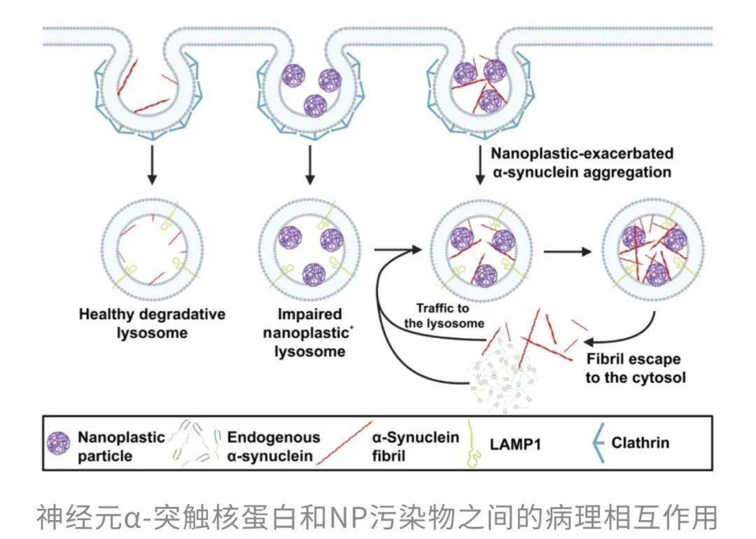 另外,这些NP不仅促进蛋白聚集,还在“阻止清除”上下了功夫:它们会导致轻度的溶酶体损伤,使神经元对聚集体的清除能力下降,造成“生成>降解”的不平衡,进而加重病理负担。