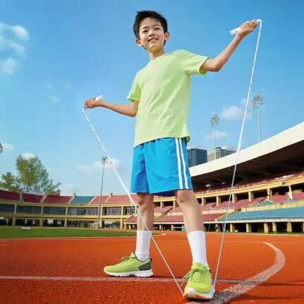 选择符合学校考试标准的跳绳,考试训练可选择轴承胶绳,利于降低空气阻力,减少打结打卷提升速度,注意绳长可调(通常为身高1.5倍)。优先选择通过10万次疲劳测试的产品,避免考试时因断裂影响成绩。