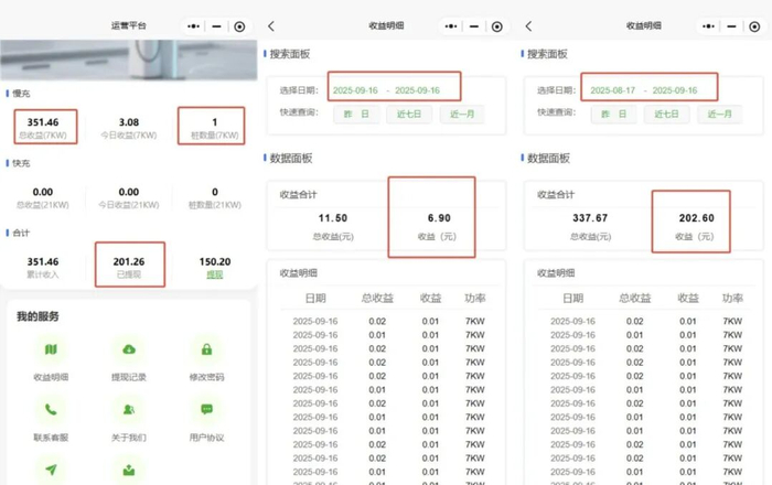 袁康告诉记者,2022年,他开始做一些品牌代理,与一些厂家合作,替他们销售充电桩,在过程中,袁康也嗅到了商机。不仅能帮助别人建站,也能自己做一些投资。从2022年开始到现在,他陆续投了几十个充电桩。