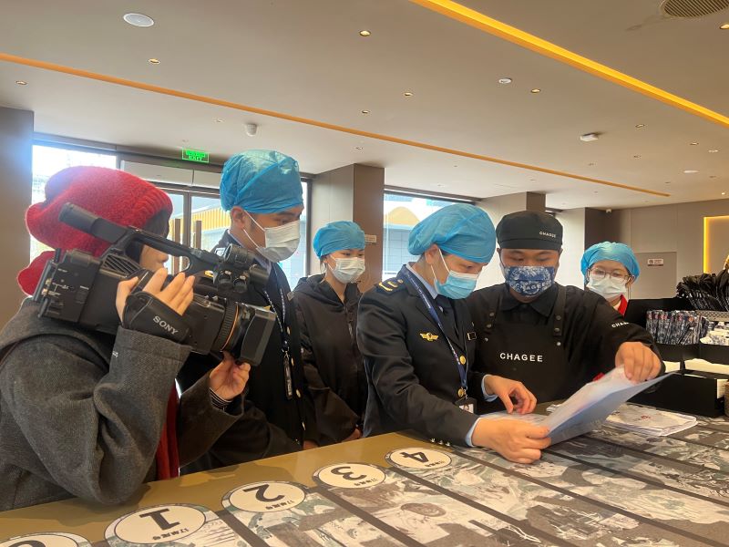 马山县市场监督管理局执法人员与政协委员、八桂食安“志愿者”、媒体记者和消费者代表随机检查“霸王茶姬”奶茶店