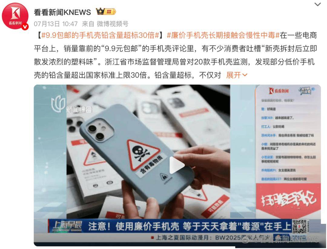 近日,据看看新闻KNEWS报道,在一些电商平台上,销量靠前的“9.9元包邮”的手机壳评论里,有不少消费者吐槽“新壳拆封后立即散发浓烈的塑料味”。
