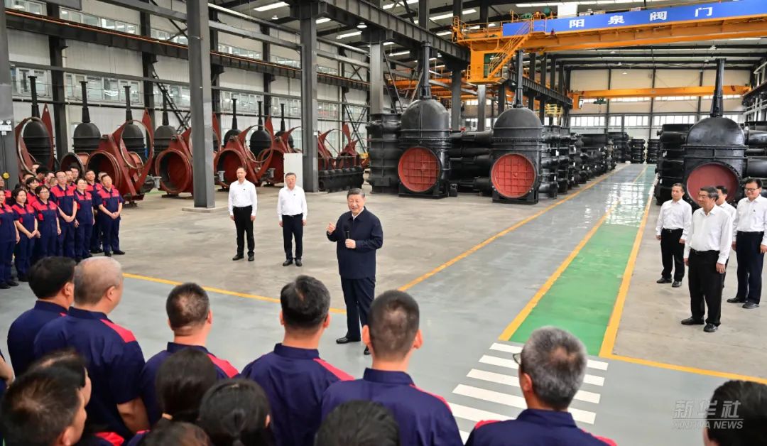7日下午,习近平总书记在阳泉阀门股份有限公司考察。他察看企业生产车间和产品展示,同现场工人亲切交谈,了解山西加快产业转型升级、推动高质量发展等情况。