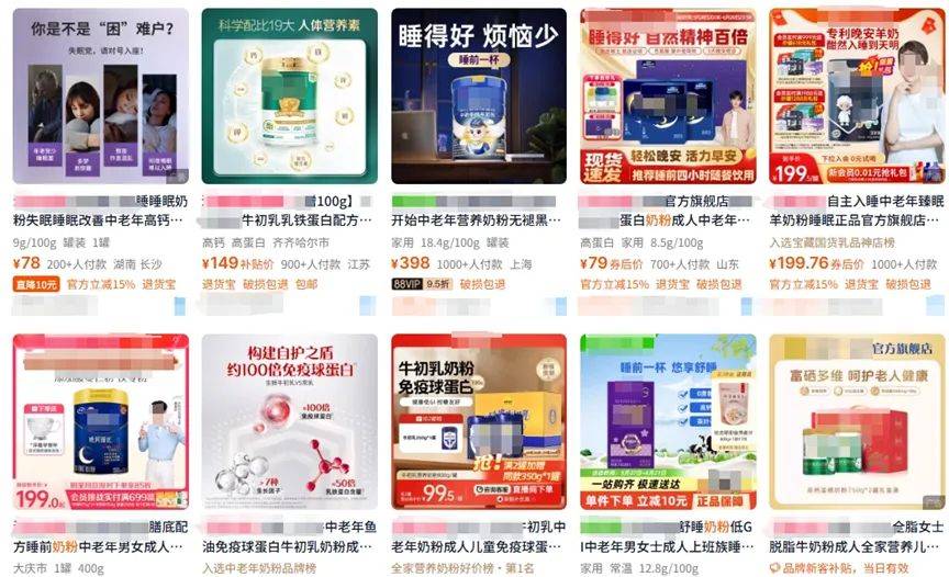 以助眠奶粉为例,国内外主流乳企如飞鹤、伊利、光明、雀巢、达能等均推出了相关产品,每100克的线上价格大约在16元至49.8元之间,销量从几十件到上万件不等。