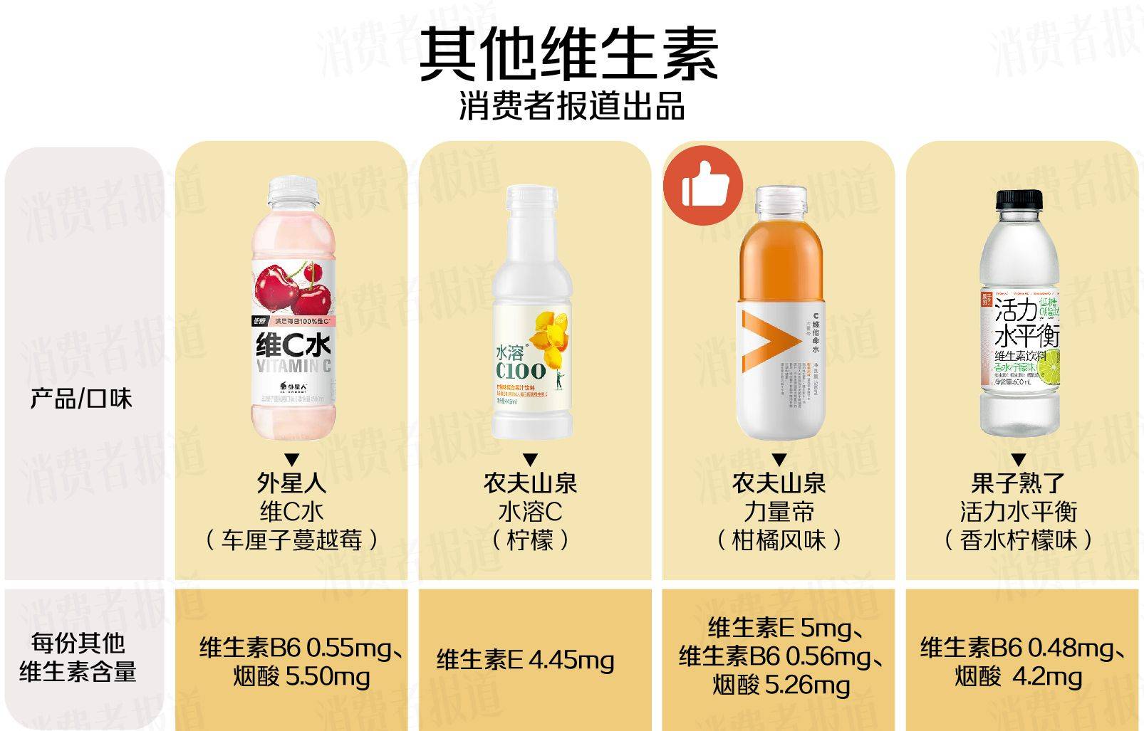 近日,我们对市面上主流的4款维生素C饮料进行了对比分析,包括外星人维C水、农夫山泉水溶C100、农夫山泉力量帝、果子熟了活力水平衡,对比其维生素C含量、糖含量、热量及其他维生素的使用情况等。