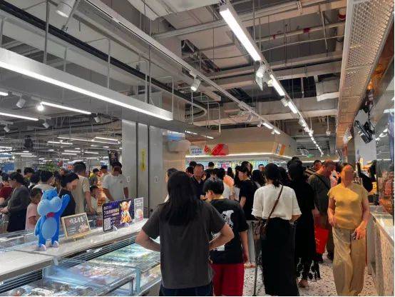 ( 五一期间东莞盒马线下店人头攒动,《消费者报道》记者 摄)