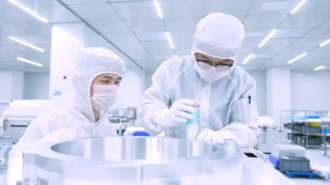 在南昌中微半导体设备有限公司生产车间,技术人员在工作