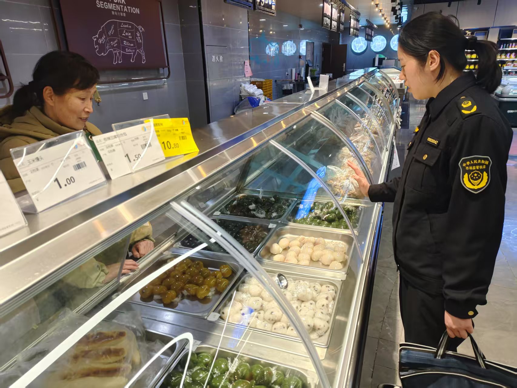 执法人员深入辖区农贸市场、超市、糕点店等青团制售场所,重点检查生产经营主体资质是否齐全、食品原辅料采购是否履行进货查验、索证索票义务,从业人员是否持有效健康证明,现场制售条件是否卫生洁净、是否按照贮存要求存放等,进一步督促生产经营者落实食品安全主体责任。执法人员还重点查看青团的包装标识是否规范,产品名称、生产日期、保质期、配料表等信息是否清晰标注,严防不合格的食品流入市场。