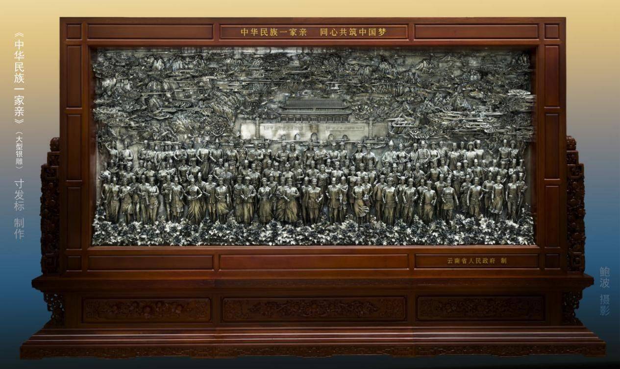 值得一提的是,寸发标设计的主题为《中华一家亲》的大型银雕屏风生动诠释出全国各族人民“中华民族一家亲,同心共筑中国梦”的共同愿景,该屏风也被国家民族文化宫永久性收藏。