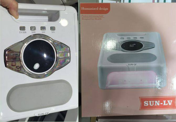 ▲各种全英文标识的美甲灯外包装(《消费者报道》摄)