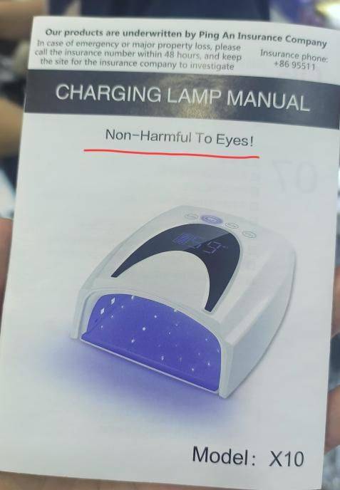 记者还留意到,有一款灯光为粉红色的美甲灯在商铺内售卖,有别于普通紫外线光照的美甲灯。另外,该店还有一款说明书上宣称“不伤眼睛”的美甲灯在售卖。但这两款美甲灯是否比普通紫外线的伤害更小,店内的工作人员徐女士表示不清楚。
