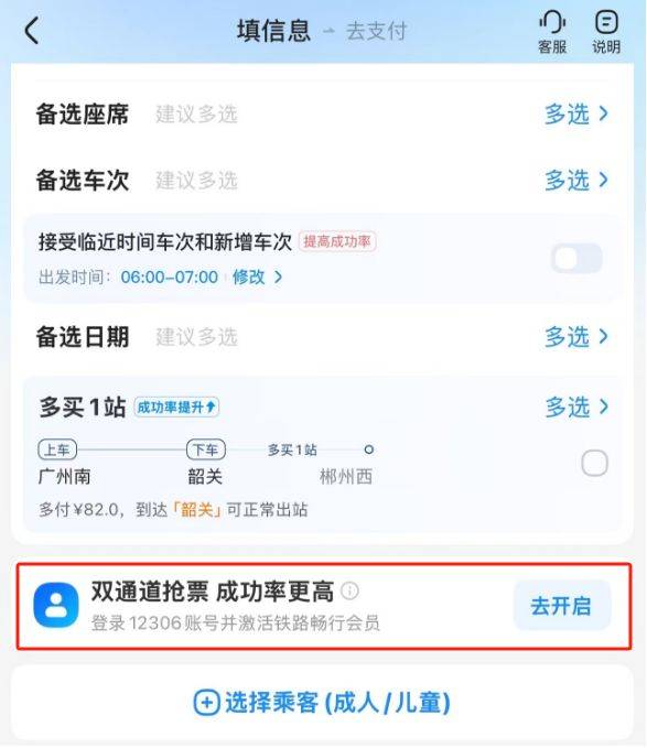 另外,记者在实际操作中发现,智行火车票App会提示“双通道抢票,成功率更高”,并建议用户在平台登录12306账号并激活铁路畅行会员。