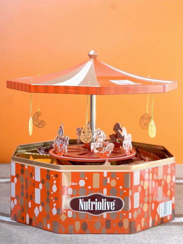 在“情绪价值”方面,一些好玩且带有好寓意的产品吸引了众多年轻消费者的目光,“MM酥饼四式礼盒”的橘子造型寓意大吉大利,而花朵造型寓意着“春暖花开”;“加州原野旋转木马脆皮坚果仁礼盒”带有旋转木马的造型,旋转即有音乐,十分喜庆且有趣。