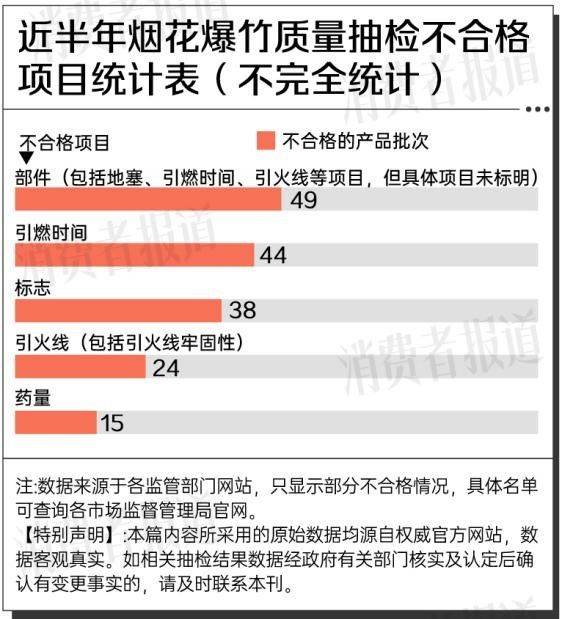 抽检结果显示,近半年各地监管部门抽检共发现242批次不合格产品,不合格原因主要集中在部件不达标上,包括引燃时间、引火线等不符合国家规定。