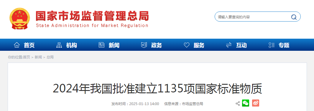 2024年,市场监管总局批准新建国家标准物质1135项,比上年增长51.9%,总数首次超1.8万项,为保障经济社会各领域“测得了、测得准”提供有力支撑。