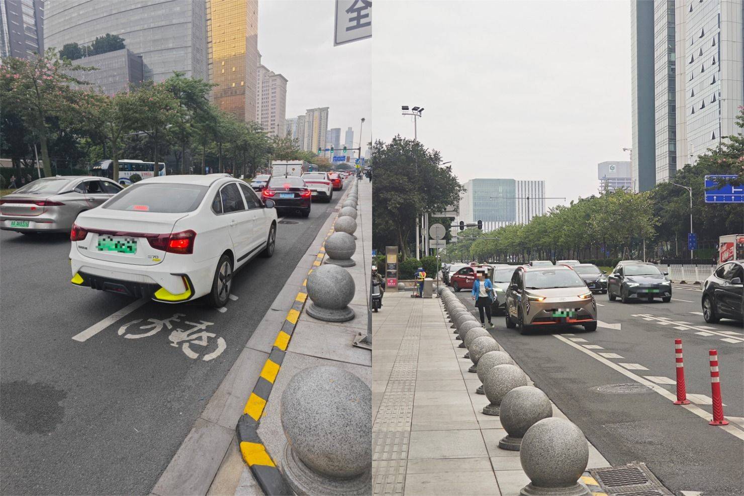 但《消费者报道》记者现场调查发现,即使在珠江新城这样的市中心区域,电动自行车的配套设施同样缺乏,比如缺少公共充电桩、部分道路缺少非机动车道、部分非机动车道被机动车占用等。