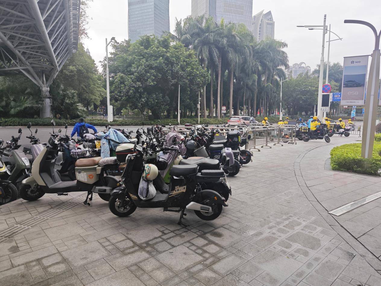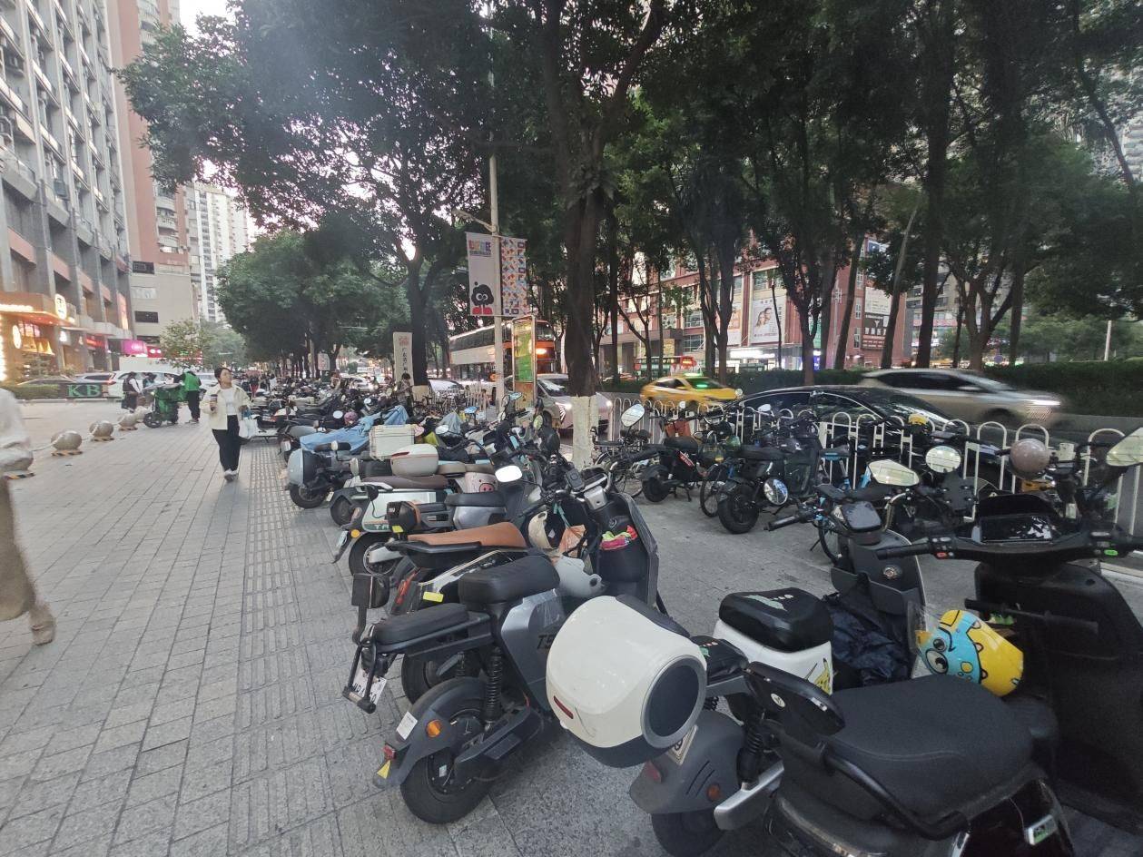 12月9日,《消费者报道》记者实地走访珠江新城多个区域,发现电动自行车在人行道上乱停放、快速行驶并与行人抢道的乱象非常普遍。