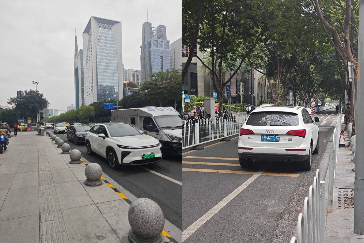 ▲多辆机动车违停占用非机动车道(《消费者报道》摄)