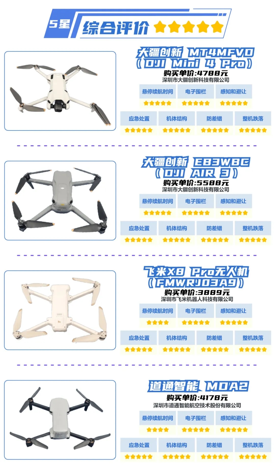 3.20款样品均为目前市场上主流的消费级无人机品牌。