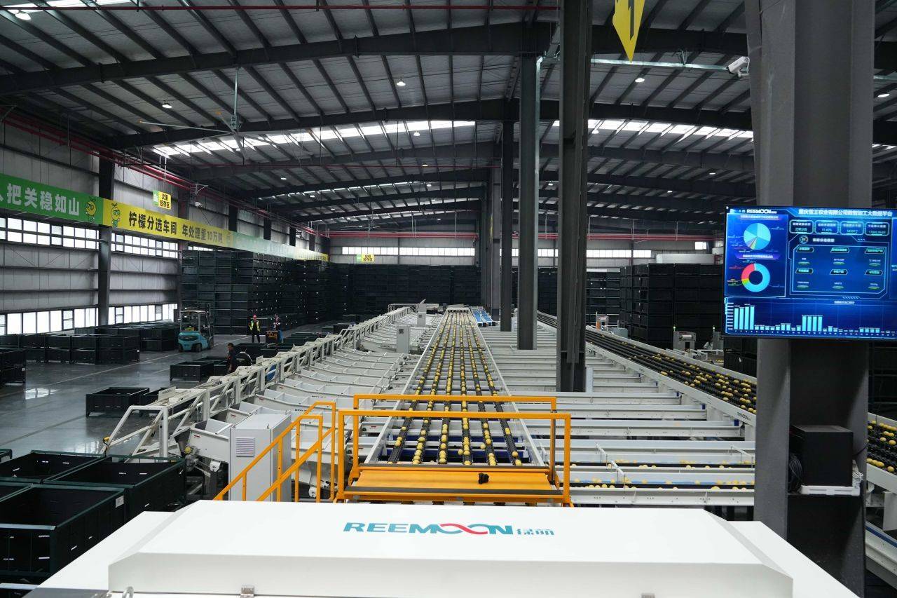 李智也是科学种植的受益者,除了柠檬种植,他还在潼南柏梓镇建立了一个柠檬加工工厂。该工厂由天池社区等7个经济联合社与蜜雪冰城、重庆誉鑫农业共同创建,进行鲜果分选、加工及储存。每年十月柠檬采收季,最多时有500多个人同时进行柠檬拆袋、装箱等工作,场面十分壮观。在雪王农业的支持下,李智的工厂引入了柠檬自动分选机等设备,自动化率大大提升。
