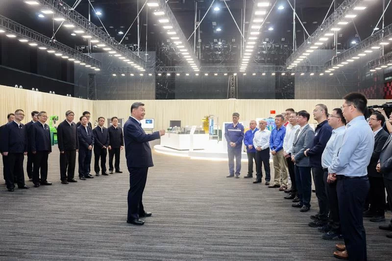 △2024年10月17日,习近平总书记在安徽合肥滨湖科学城考察时,同现场科研人员和企业负责人亲切交流。