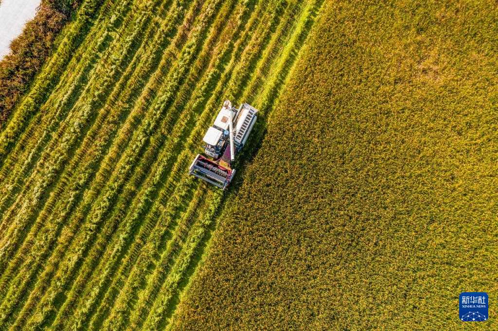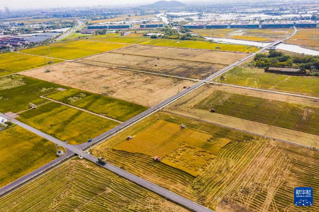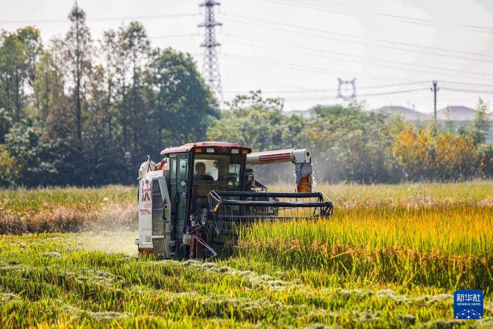 近日,浙江省湖州市吴兴区东林镇万亩稻田迎来丰收季,当地种粮户抢抓农时,趁着天气晴好抢收水稻,确保颗粒归仓。目前,东林镇全镇水稻种植面积20000余亩。