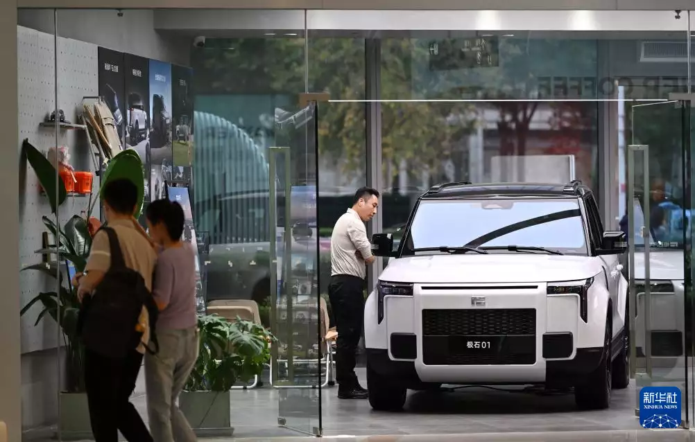 这是一家销售新能源汽车的店铺开在天津金街的商场内(10月13日摄)。新华社记者 李然 摄