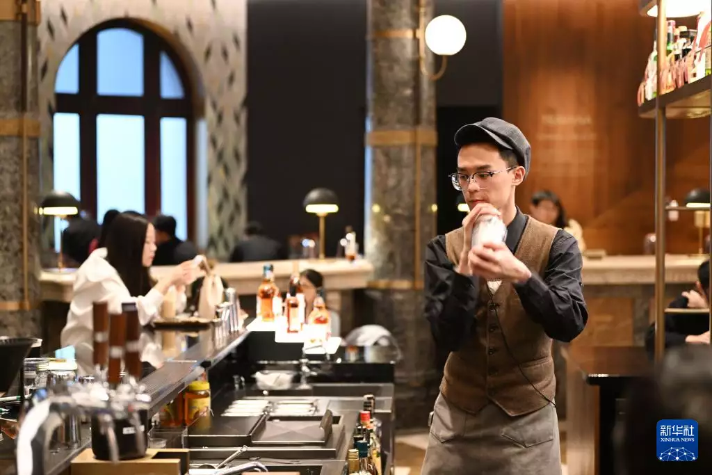 咖啡师在天津金街的星巴克制作饮品(10月13日摄)。新华社记者 李然 摄