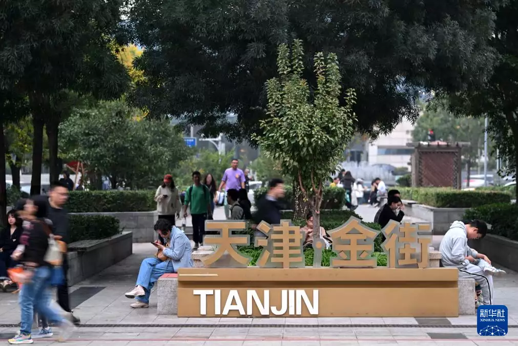 游人在天津金街漫步(10月13日摄)。新华社记者 李然 摄