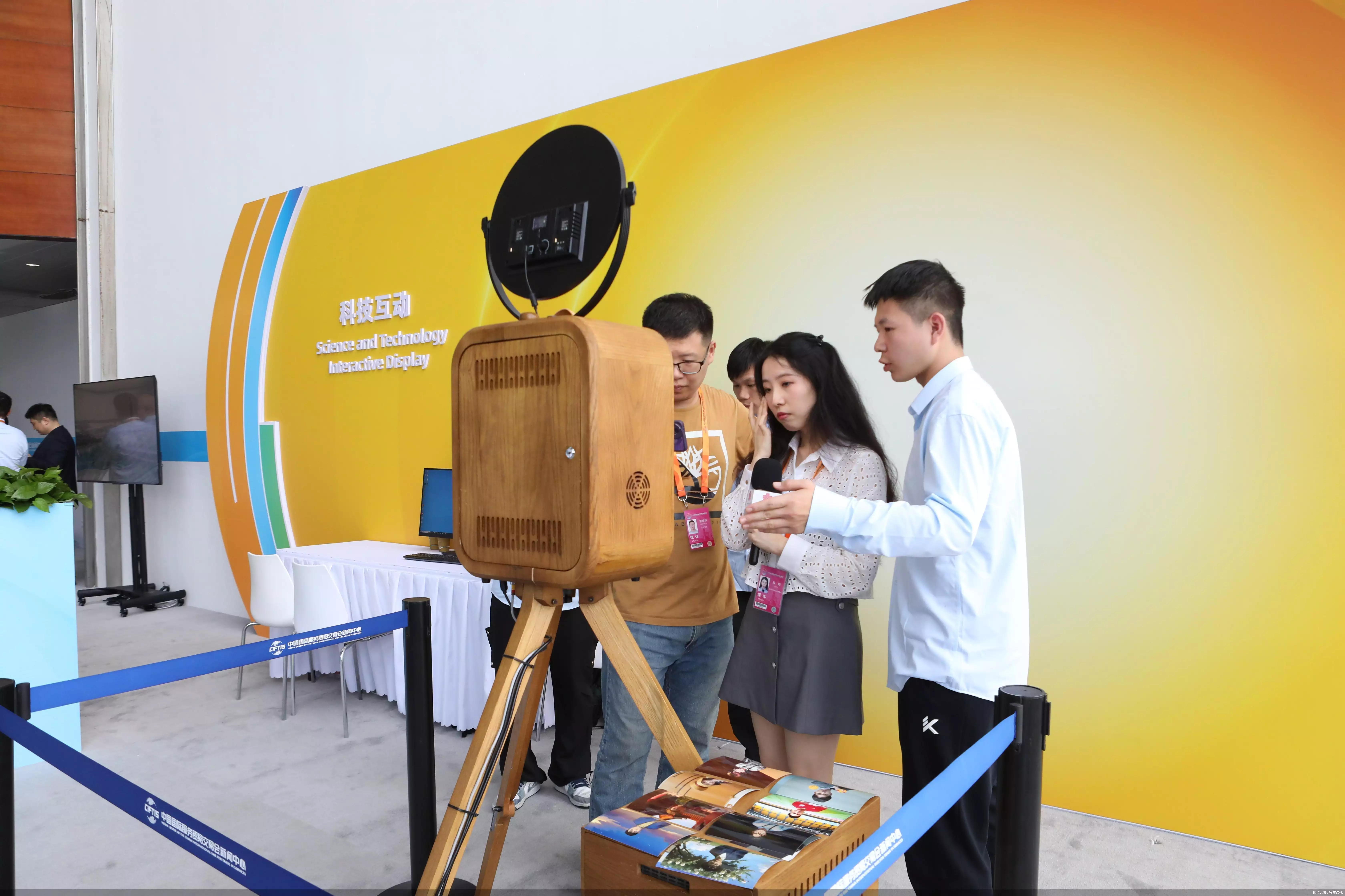 此外,新闻中心还设计制作了不同颜色的“透卡”同官方会刊一起发放,记者朋友通过“透卡”进行拍照,展现多姿多彩的服贸会。同传系统也进行了升级,16通道双系统实现一键多语种切换,既能保证多场会议同时举办情况下的使用需求,又可满足记者无线收听会议音频需求。