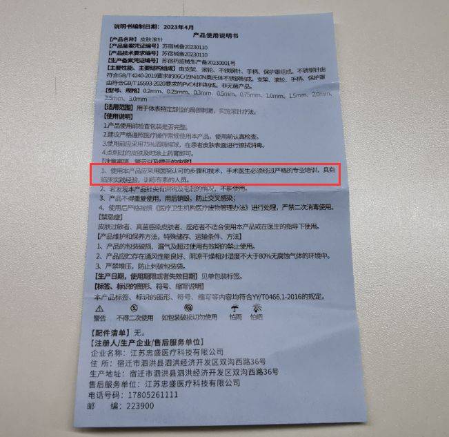 其产品说明书显示,“使用本产品应采用医院认可的步骤和技术,手术医生必须经过严格的专业培训,具有临床实践经验,训练有素的人员。”并且在产品外包装上有注明“本产品使用必须符合医疗部门相关操作规范及相关法规的要求,仅限于经培训的医生或护理人员使用。”