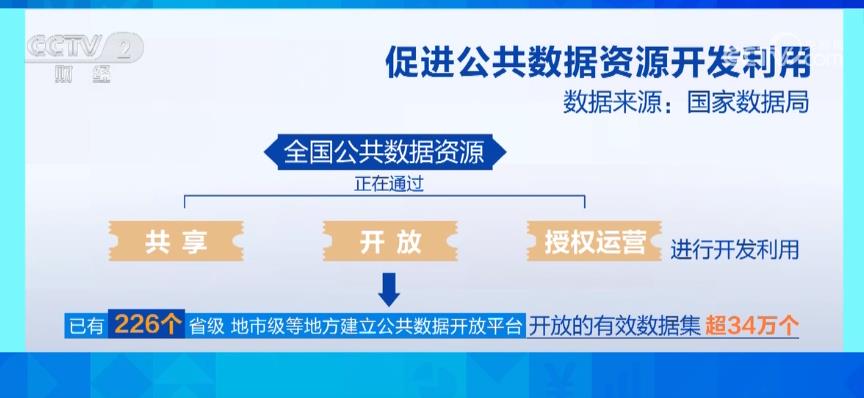 在促进数据共享方面,国家数据局表示,当前全国的公共数据资源正在通过共享、开放和授权运营的三种形式进行开发利用。其中,已有226个各级地方建立了公共数据开放平台,开放的有效数据集超过了34万个。