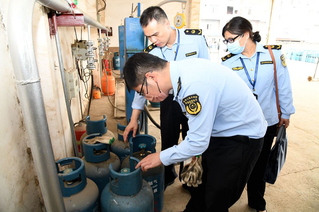 广西来宾市市场监管局执法人员在查办特种设备违法案件。