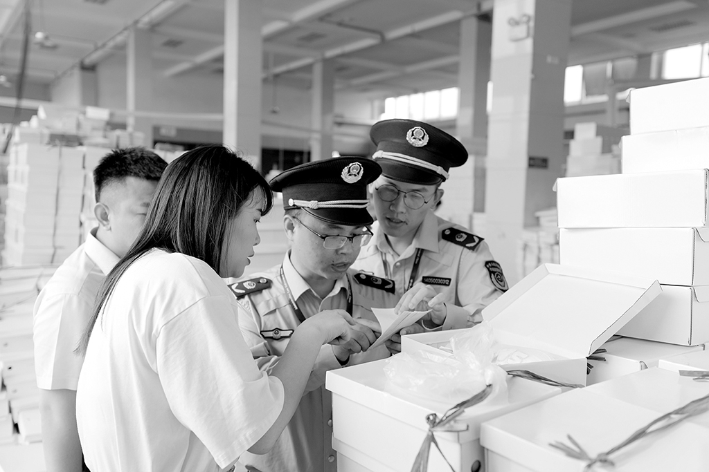 江西省新余市仙女湖区万商红新履小镇现有鞋企1200余家,制鞋产业年产值达100亿元。为了促进新履小镇鞋业高质量发展,今年以来,新余市仙女湖区市场监管局启动鞋业质量提升帮扶行动。图为该局工作人员到鞋企进行调研,就企业如何提高产品质量、树立品牌等方面给出切实可行的建设性意见。