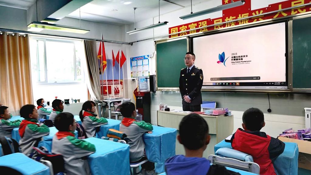 工作人员结合儿童群体年龄特点,采取讲座和现场问答方式深入浅出地与学生们进行交流,通过播放儿童化妆品科普宣传动画视频,生动形象地向孩子们介绍了儿童化妆品基本知识,普及儿童化妆品“小金盾”标志相关知识;详细耐心地为大家讲解了有关儿童化妆品的相关知识。