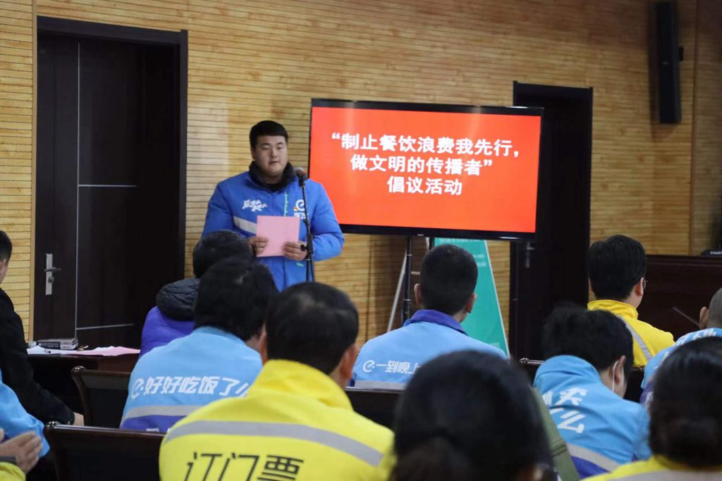 为制止外卖餐饮浪费行为,3月27日下午,江苏省盱眙县市场监督管理局组织外卖骑手开展了“制止餐饮浪费我先行 做文明的传播者”倡议活动。活动现场外卖配送员集体签订《制止餐饮浪费 从我做起》承诺书。此后,外卖小哥也将变身“反餐饮浪费”宣传员,带着“厉行节约 反对浪费”的倡议出发,在送餐箱上和食品外包装张贴“杜绝舌尖上的浪费”“按需下单 不要贪多”的宣传标语,奔跑在盱眙的大街小巷,送至每一位消费者手中,让“小餐饮”带动“大文明”。