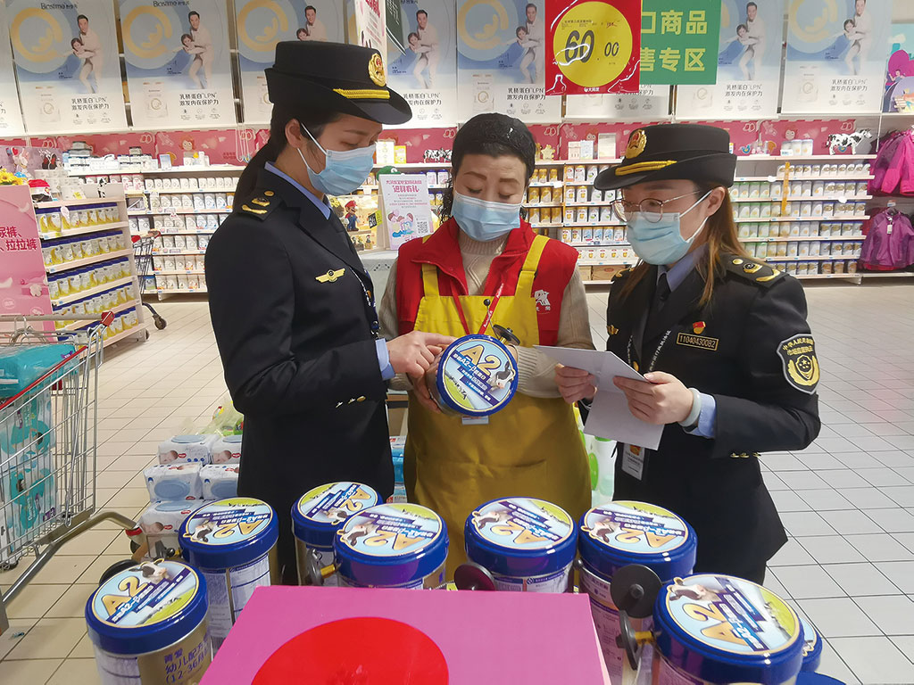 今年2月,婴幼儿奶粉“新国标”——3项强制性国家标准正式实施。连日来,浙江省湖州市长兴县市场监管局对辖区内大型商超、母婴用品店进行全面检查,督促各单位落实明码标价,把好食品安全主体责任关。图为该局执法人员正在对辖区内一家商超进行检查。