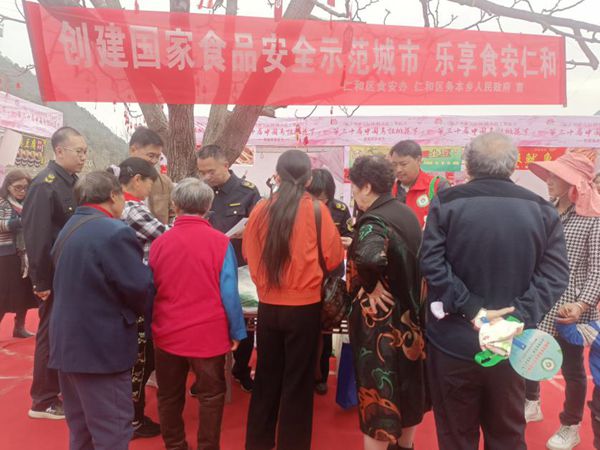 精心组织,大力推动示范创建。桃花节开幕当天,仁和区食安办联合务本乡人民政府、食品安全志愿者在节目表演现场、人流量聚集处通过设立展板、发放宣传手册、宣讲食品安全法律法规和食品安全科普知识、提供现场咨询服务、公布投诉举报电话等方式,让社会公众了解、知晓国家食品安全示范城市创建工作,共同参与到食安创建,营造社会共治的浓厚氛围,在提高公众食品安全素养的同时提高群众食品安全满意度和创建知晓率。