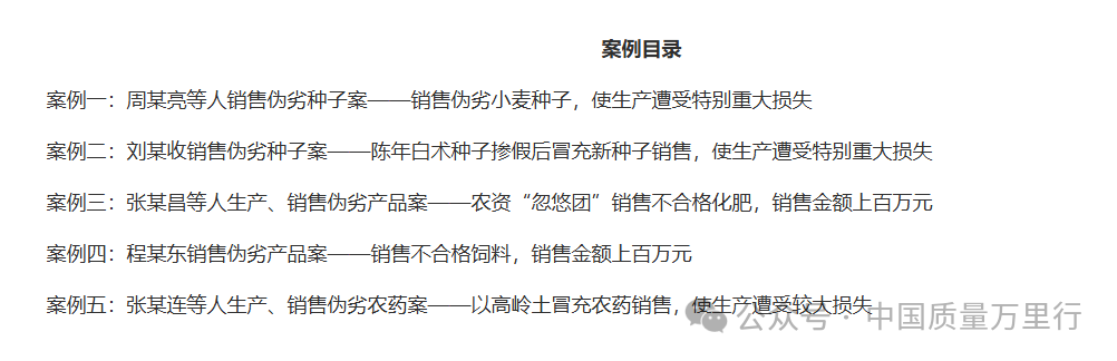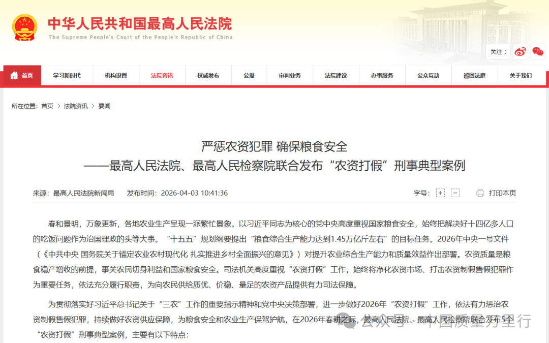 此次发布的5起典型案例涵盖种子、农药、化肥、饲料四大类农资产品,涉及以假充真、以次充好等多种犯罪手段。司法机关表示,将不断加大对农资制假售假犯罪的惩治力度,为维护国家粮食安全和农业生产提供有力司法保障。
