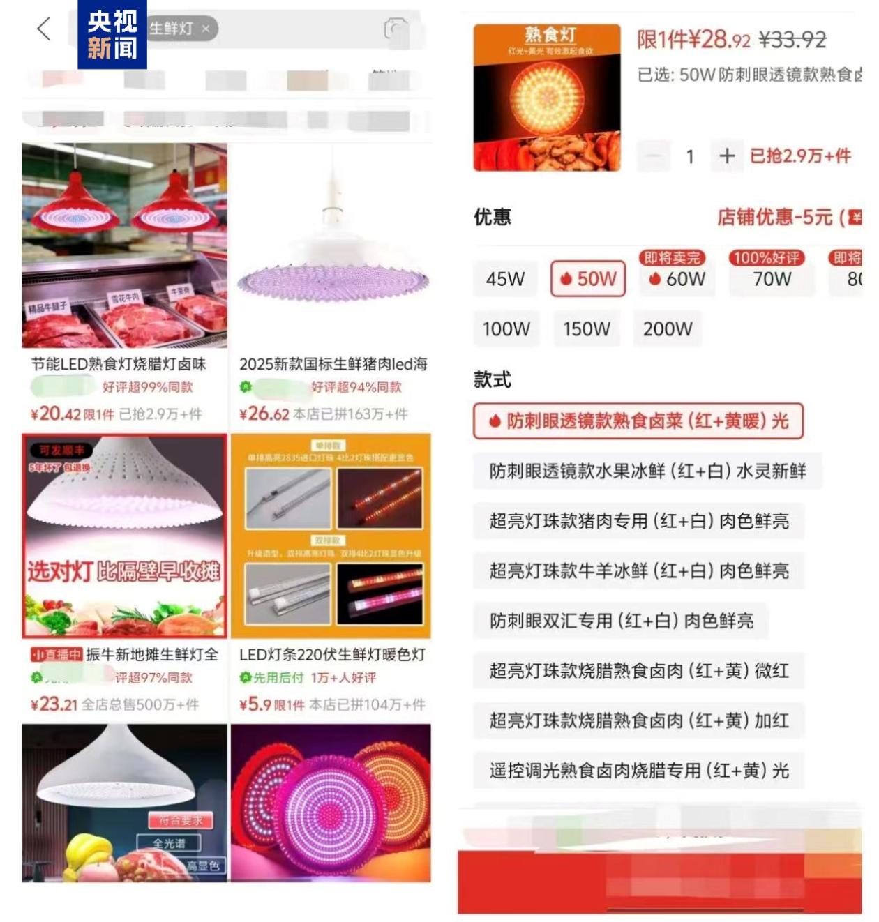 △部分电商平台售卖的“生鲜灯”,可以根据不同食品种类区分不同光源颜色