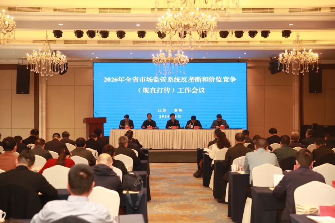 4月9日,全省市场监管系统反垄断和价监竞争(规直打传)工作会议在泰州召开。会议深入学习贯彻习近平新时代中国特色社会主义思想,认真落实全省市场监管工作会议、市场监管总局反垄断和价监竞争条线会议精神,总结2025年工作,分析当前形势,部署2026年任务。省市场监管局一级巡视员陈琪宏主持会议并讲话,二级巡视员万学群、鞠汉芳出席会议。
